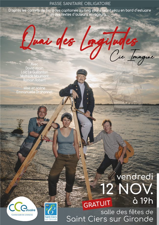 D’après les carnets de bord des capitaines au long cours ayant vécu en bord d’estuaire et des textes d’auteurs voyageurs … Le vendredi 12 novembre à 19h à la salle des fêtes de Saint-Ciers-Sur-Gironde. Spectacle Gratuit.